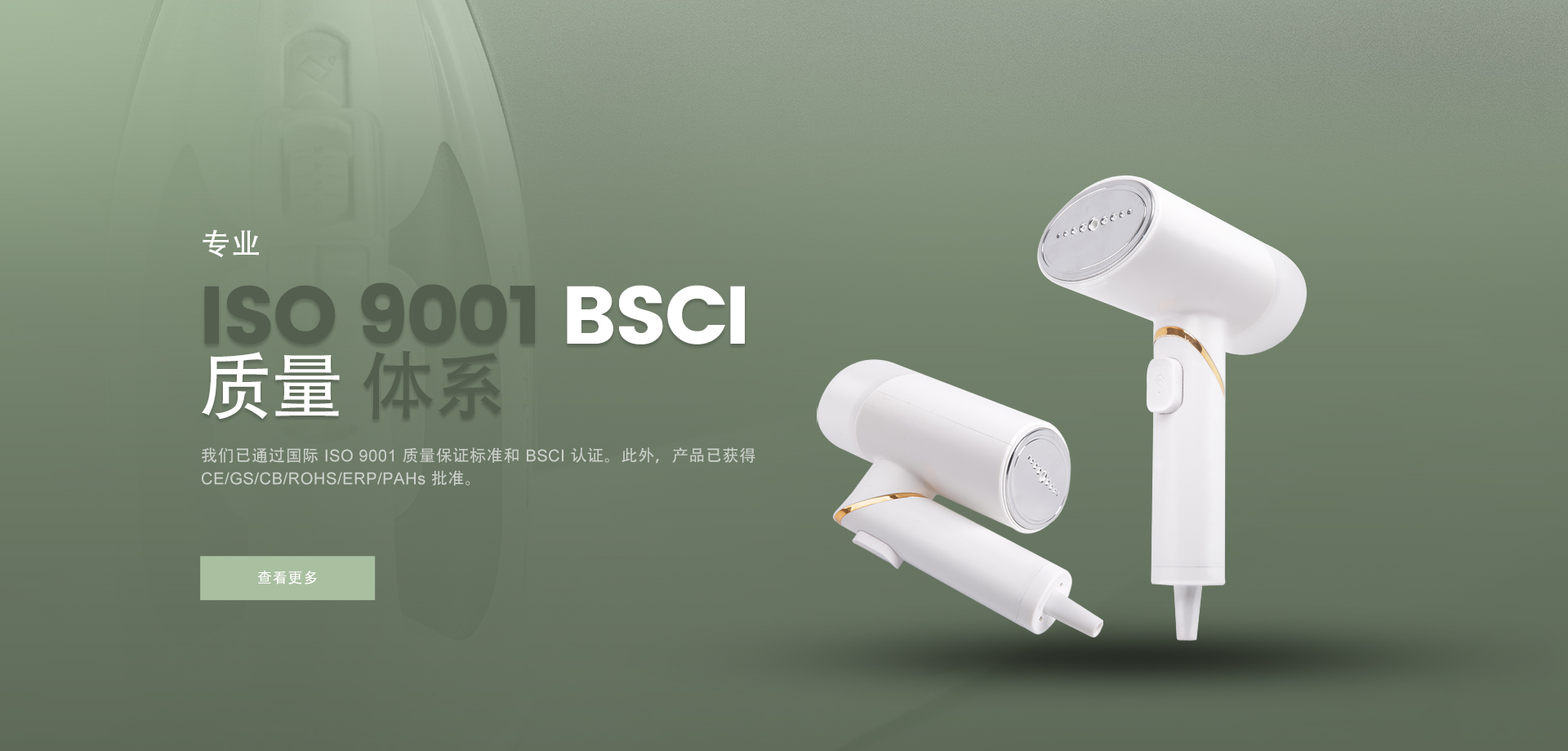 我們是一家專業(yè)的制造商和出口商,提供設(shè)計、開發(fā)、生產(chǎn)、銷售和相關(guān)服務(wù),產(chǎn)品包括電熨斗、手持式蒸汽掛燙機、蒸汽刷等。 美威工廠占地4000平方米,擁有雄厚的技術(shù)力量和先進的設(shè)備,可以滿足您對生產(chǎn)能力和質(zhì)量的各個方面的要求,目前已通過國際 ISO 9001 質(zhì)量保證標(biāo)準(zhǔn)和 BSCI 認(rèn)證。此外,產(chǎn)品獲得 CE/GS/CB/ROHS/ERP/PAHs 批準(zhǔn),并遠(yuǎn)銷歐洲、中東、俄羅斯、亞洲和南美等。
